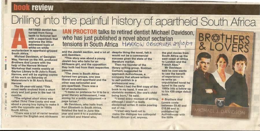 The Harrow Observer has just printed an interview with the author of Brothers and Lovers. Check it out here... http://www.mike-davidson.com/observer29102009.jpg